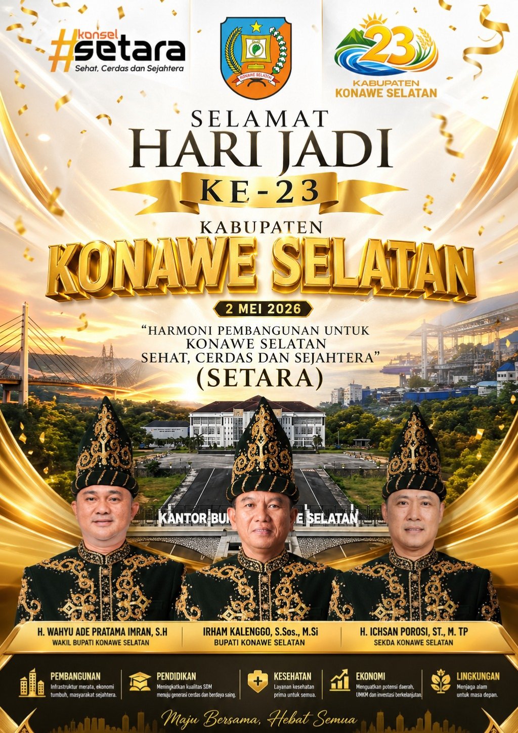 Komitmen pada sektor pendidikan juga diperkuat melalui program SETARA lainnya, yaitu penyediaan seragam gratis bagi siswa-siswi tingkat Sekolah Dasar (SD) dan Sekolah Menengah Pertama (SMP). Mantan Ketua DPRD Konsel itu menegaskan bahwa program tersebut akan terus menjadi prioritas dan berkomitmen untuk melanjutkannya pada tahun anggaran 2026.