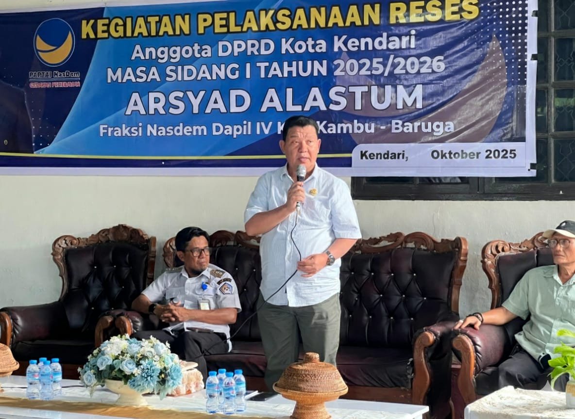 SULTRALIVE.COM, KONAWE SELATAN – Ratusan warga dari Kelurahan Kambu dan Kelurahan Mokoau Kecamatan Kambu antusias mengikuti Reses Masa Sidang I Anggota DPRD Kota Kendari Fraksi Partai NasDem, Drs Arsyad Alastum tahun 2025-2026, Rabu (29/10/2025).